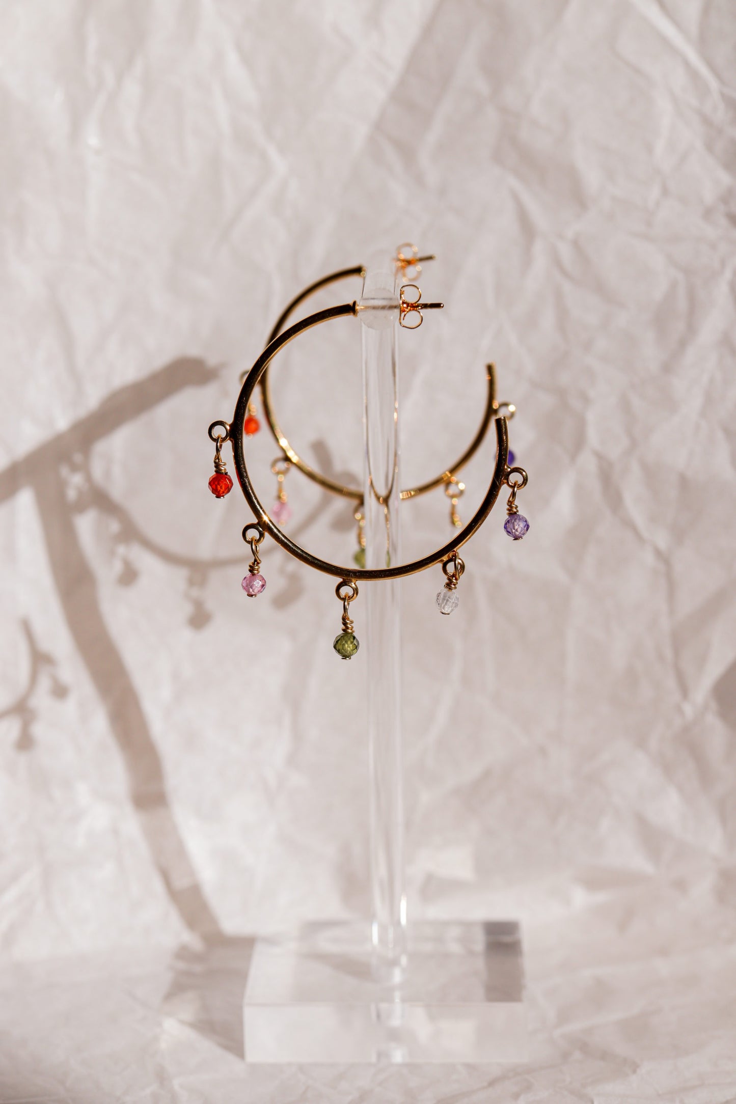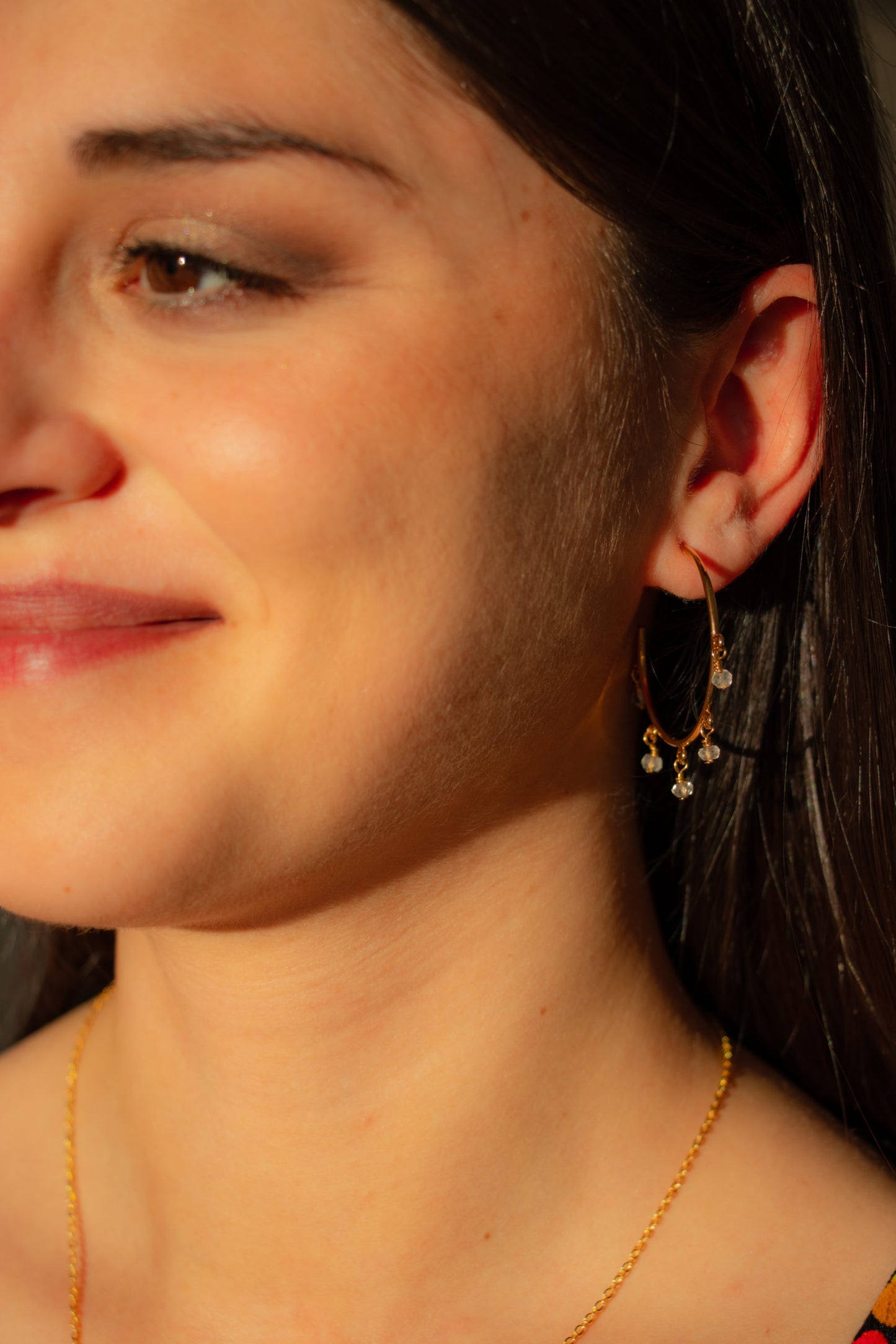 Boucles d'oreilles plaquées or et pierres semi-précieuses